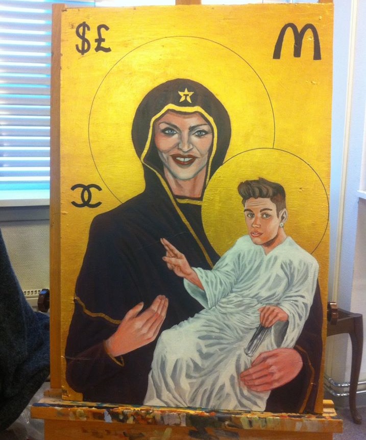 Ne znamo ko je autor ovog umetničkog dela, al prepoznajemo tetka Madonu i mlađanog Džastina Bibera, pop ikone današnjice.