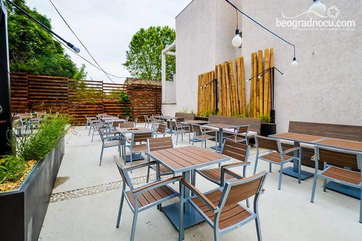 Ovaj kafić u Beogradu sa baštom je koncipiran tako da predstavlja svojevrsnu kombinaciju i fuziju stilova sa mnogih egzotičnih destinacija. Pored mnoštva zelenila, rastinja i palmi koje upotpunjuju idiličnu sliku, letnja bašta ovog kafića uređena je i nameštajem, skulpturama i raznim drugim detaljima donetih sa Balija, dok su materijali i šarenilo inspirisani Marokom.