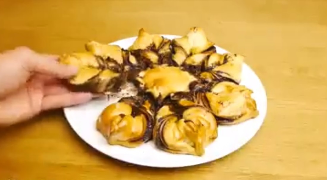 Nemam recept, ali nije ni važno, pratite pažljivo video i verujemo da ćete uspeti da napravite ovu slasnu čokoladnu poslasticu. Poenta je da na kraju dobijete kiflice koje su spojene u zvezdu. I sve su podjednako ukusne, jer ko bi im odoleo?