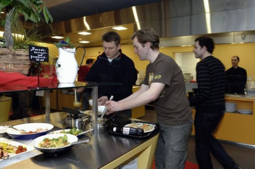 Besplatna hrana i grickalice – Zaposleni u Google-u se izuzetno dobro hrane i kompanija im nudi zdrav i raznovrstan doručak, ručak, pa i večeru ukoliko rade do kasno i to potpuno besplatno. Tu su i brojni barovi sa sokovima i kafom širom kampusa.