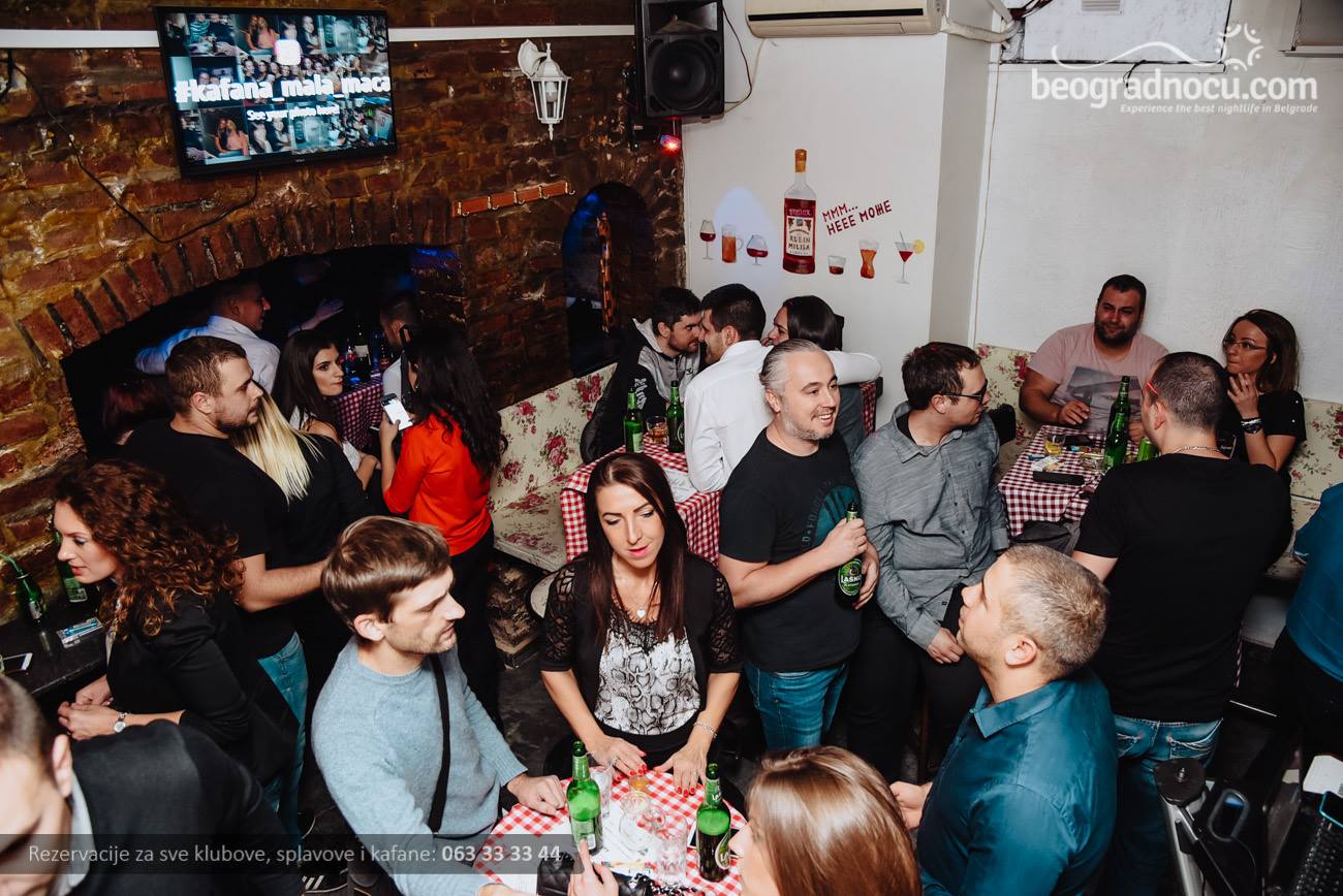 Kafanske muzike nikad dosta, a ovog petka možete izvršiti rezervacije za kafanu Mala Maca putem naših telefona 063 33 33 44 ili 063 34 34 33 kao i online. U kafanu Mala Maca petkom se organizuje živa svirka "od stola do stola" gde zaista bude kao na fotografijama starih beogradskih kafana, a za to je zadužen Mala Maca Bend. Pije se najčešće rakija, pivo ivino, a tokom čitave noći gostima je na raspolaganju i kuhinja, tako da mogu malo da se okrepe i upotpune užitak. Rezervacije su besplatne, ali obavezne.